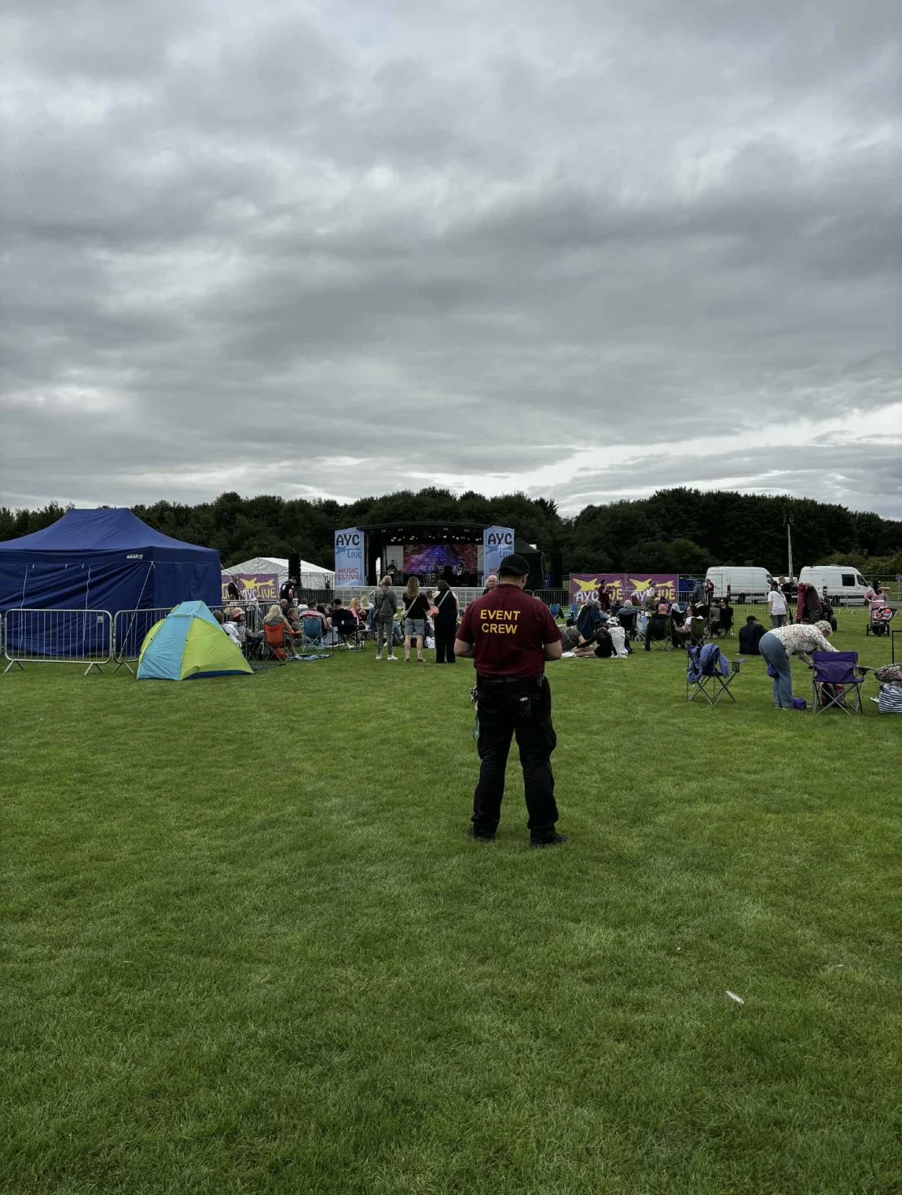 My role was to oversee the safety of festival goers whilst acts were playing over the weekend, answer any questions someone may have had and handling crowd control, working closely alongside the security team. Over the four days of setup, I worked closely alongside the production team in helping get everything set up, anything from checking patch lines on stage to ereting the stages roof and line array system. My primary role stage side during the performances to was maintain a close eye on all the equipment on stage and communicate with FOH if a problem occured. I was incharge of loading amps, cabs and the drum kit on and off stage during change over, line checking any festival hired backline and ensuring all musicians had what they needed to perform which required clear communication and understanding even with lack on knowledge.